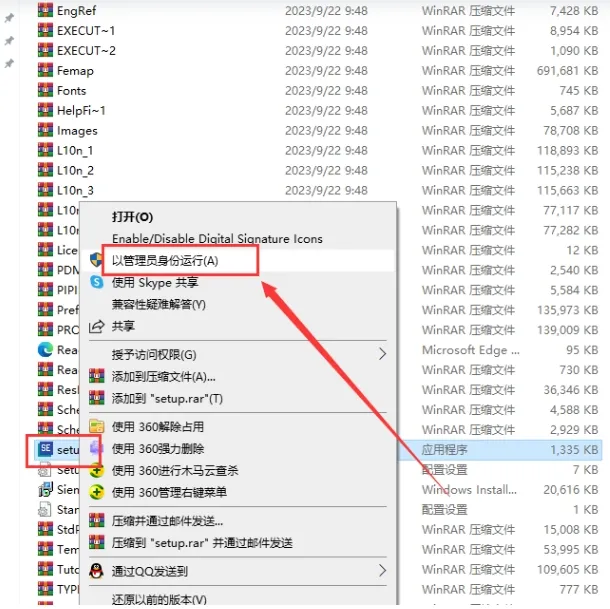 3. 鼠标右键以管理员身份运行【setup.exe】。