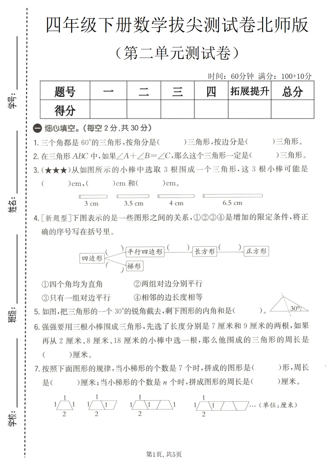 四年级(下)数学 第二单元拔尖测试卷《北师版》