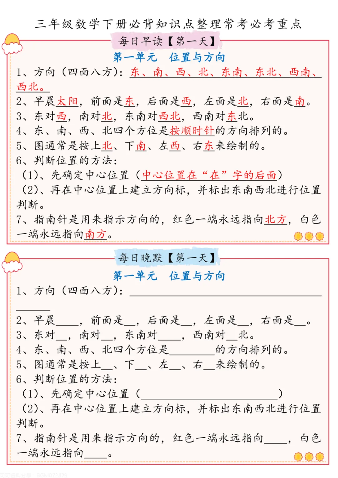 【免费下载】三年级数学下册必背考点早读晚默,PDF电子版,共13页,先保存,以免资源失效
