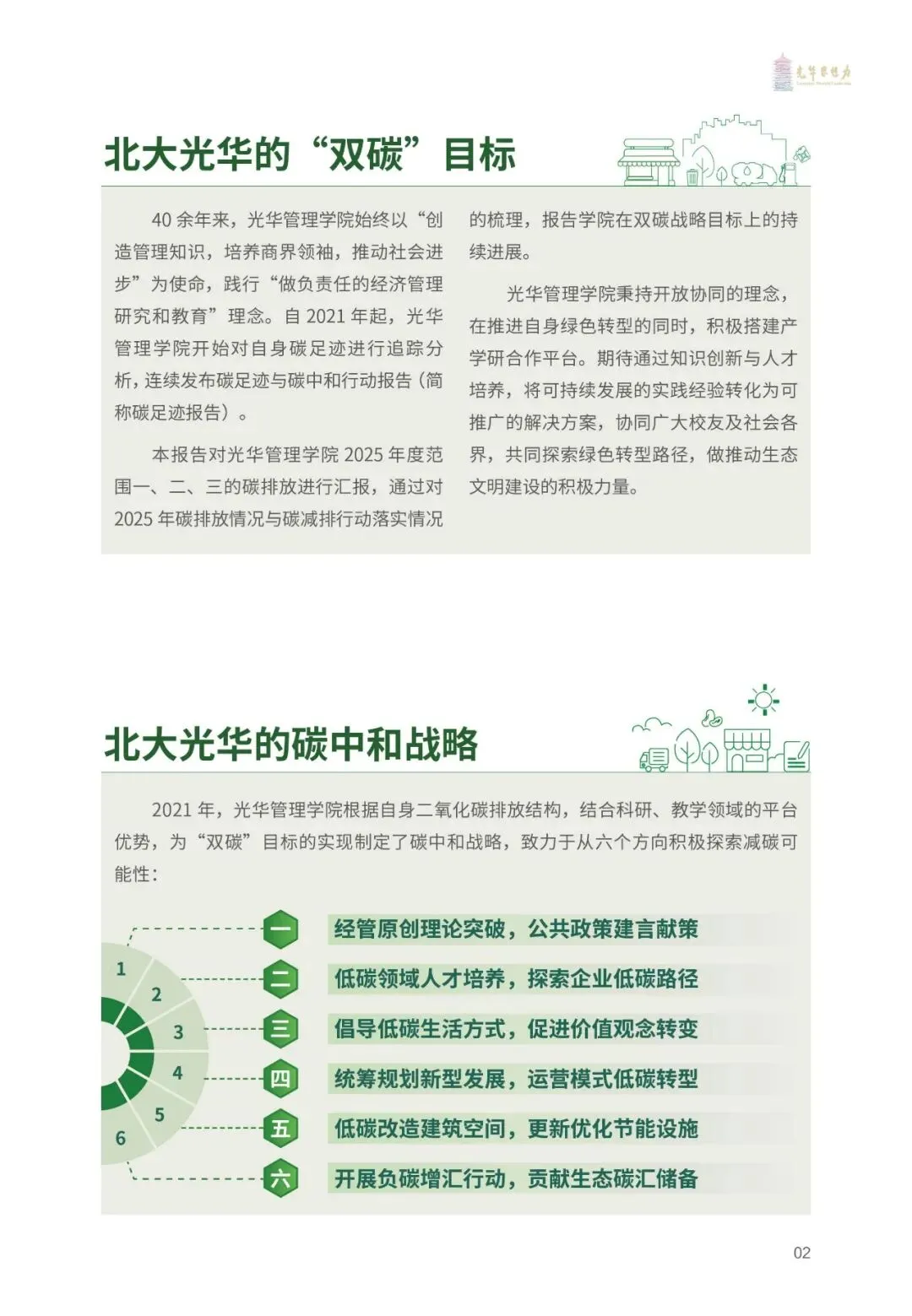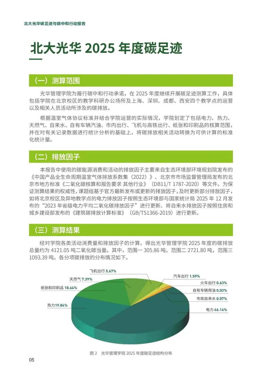 《北京大学光华管理学院碳足迹与碳中和行动报告2025》是光华管理学院第五次发布自身碳足迹相关报告。