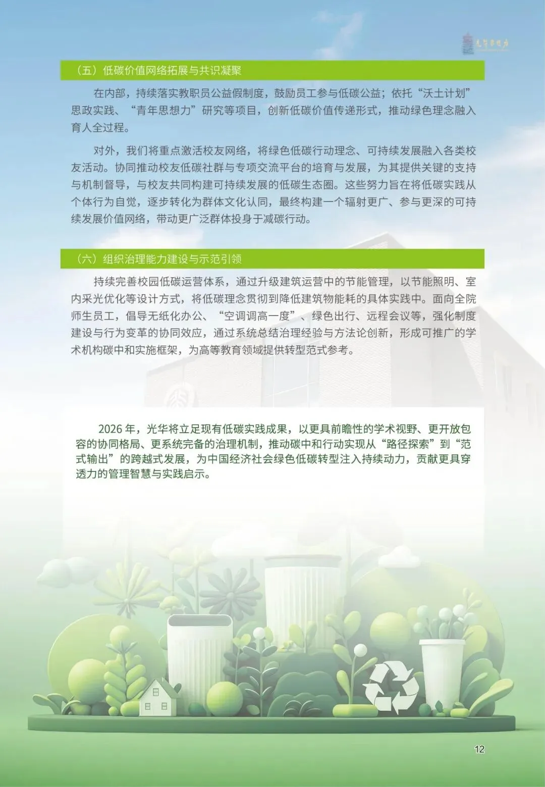 综合而言,光华管理学院的低碳实践正从局部突破转向系统转型、从理念倡导转向行动自觉,在制度优化与行为变革的协同中探索碳中和的可持续路径。学院将在低碳转型方面持续探索,以管理创新助力绿色变革。