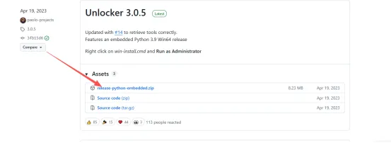 三.下载Unlocker(官网下载地址:https://github.com/paolo-projects/unlocker)点击Releases进入下载。