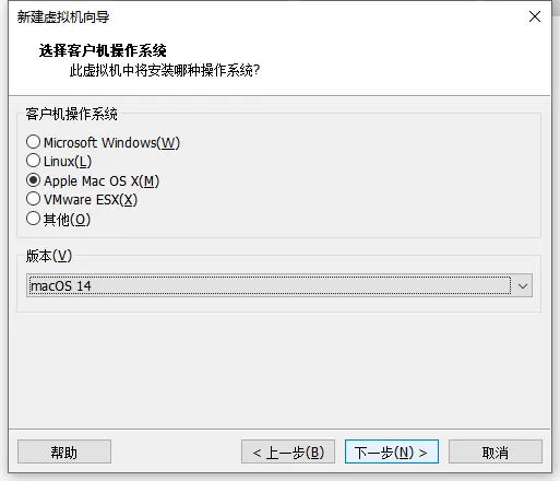 七.这里就可以看到Apple mac os啦,因为我的macos版本是14.8.5,所以我这里选择macos 14,然后点击下一步。