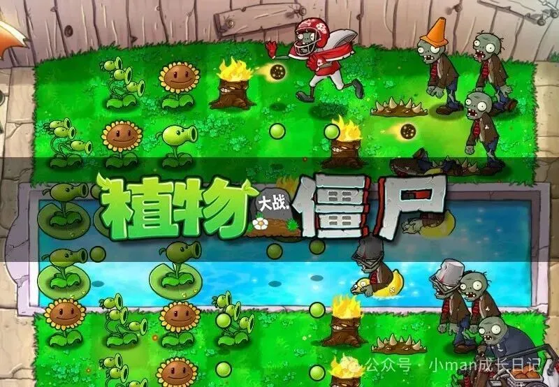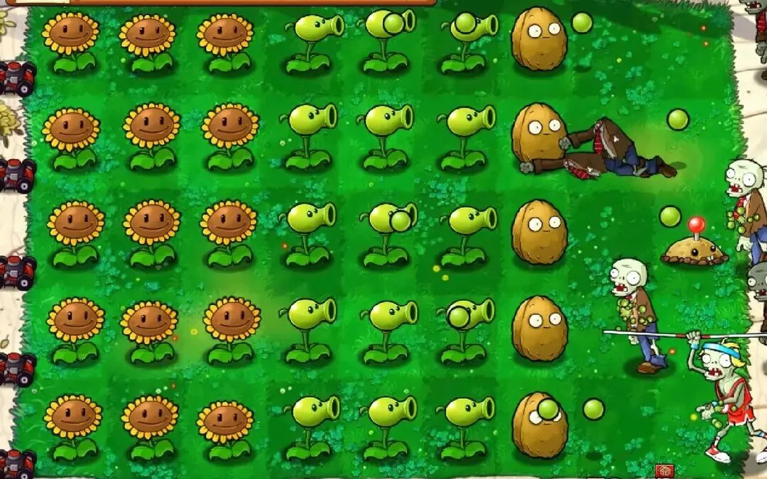 场地:草坪 / 泳池 / 屋顶等,分为5–6 条横向路线,僵尸沿路线从右向左走。