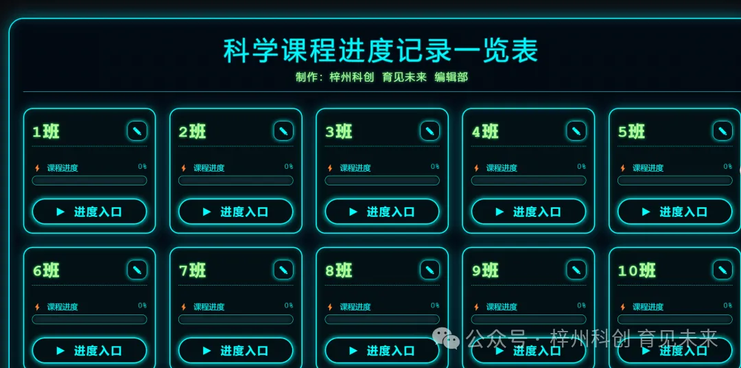 本工具无需联网、数据本地存储、完全免费,预设10个可自定义班级卡位,课程目录可自由编辑,语文、数学、地理等任一学科、任一教材版本都适配 !纯HTML文件,数据存在电脑本地浏览器缓存,桌面打开、关闭网页,进度数据依然保存!