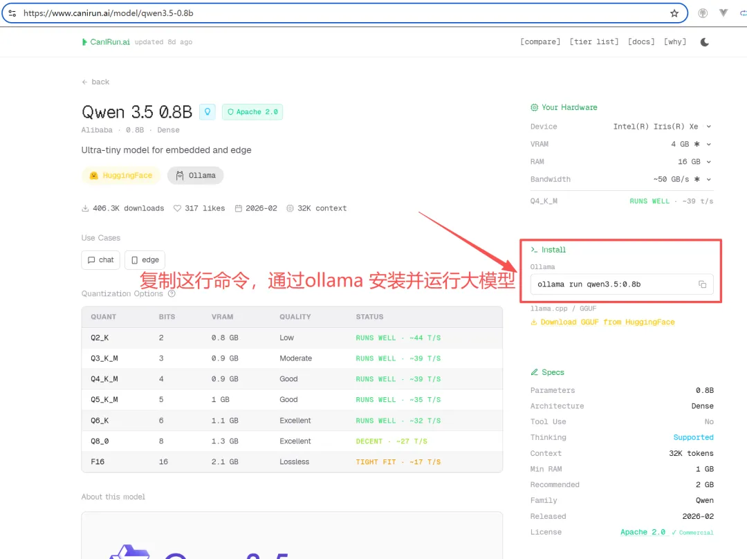 执行上述命令前,建议先前往 Ollama 官网查看该大模型的详细信息。