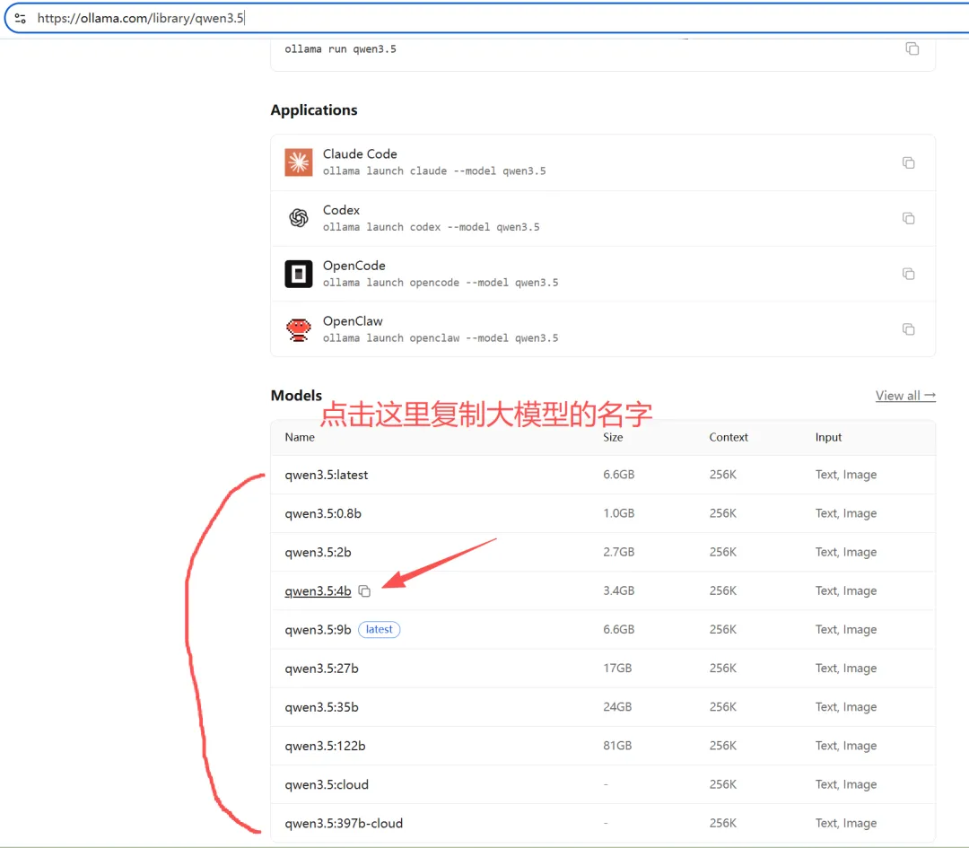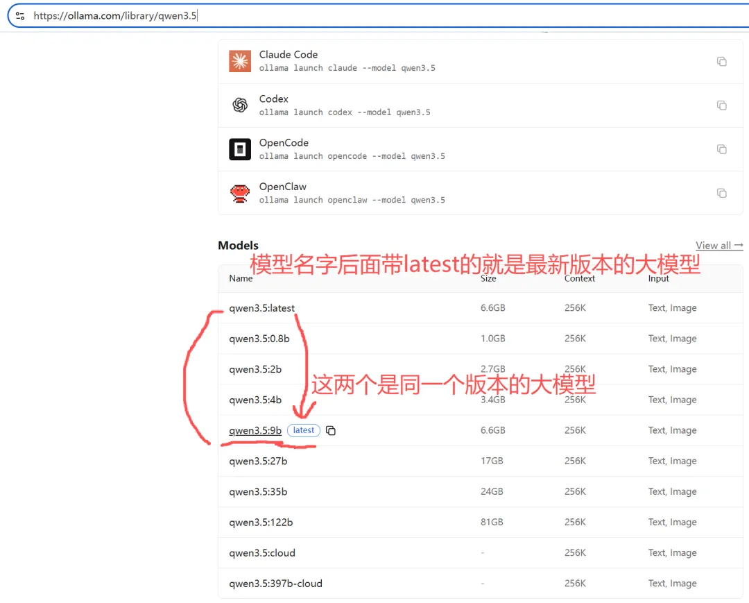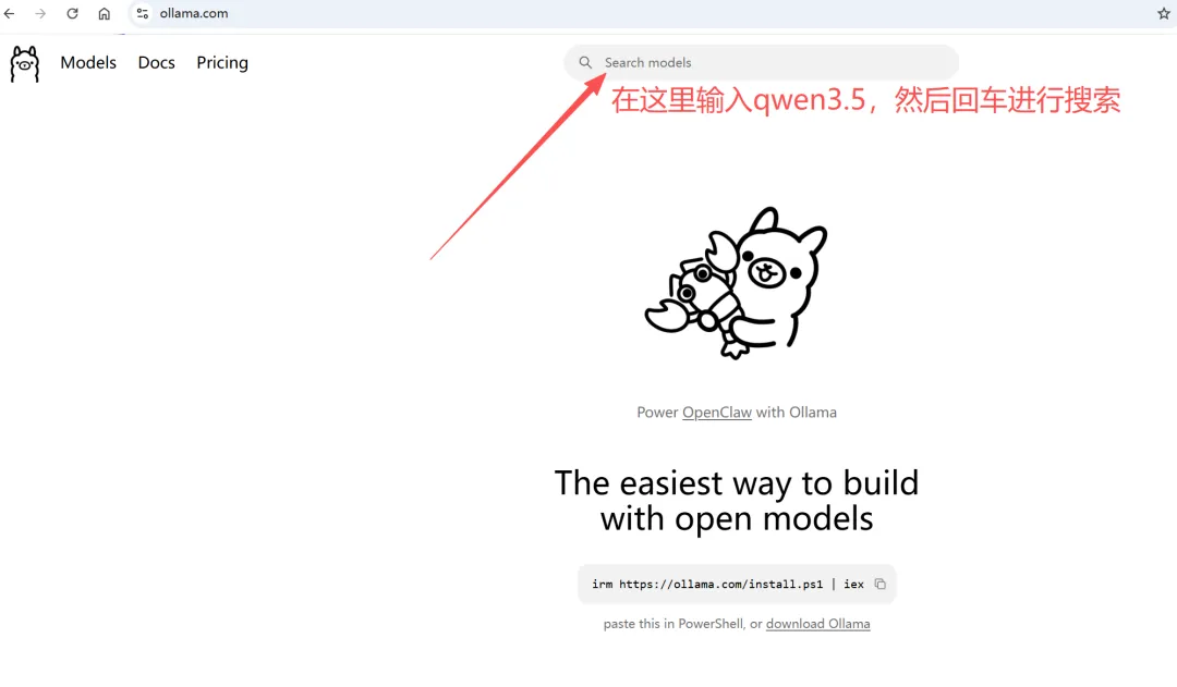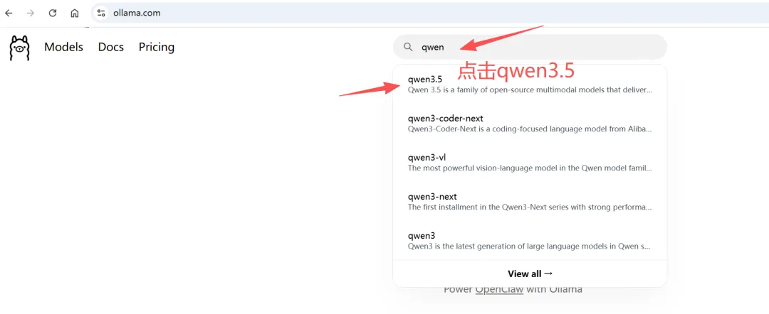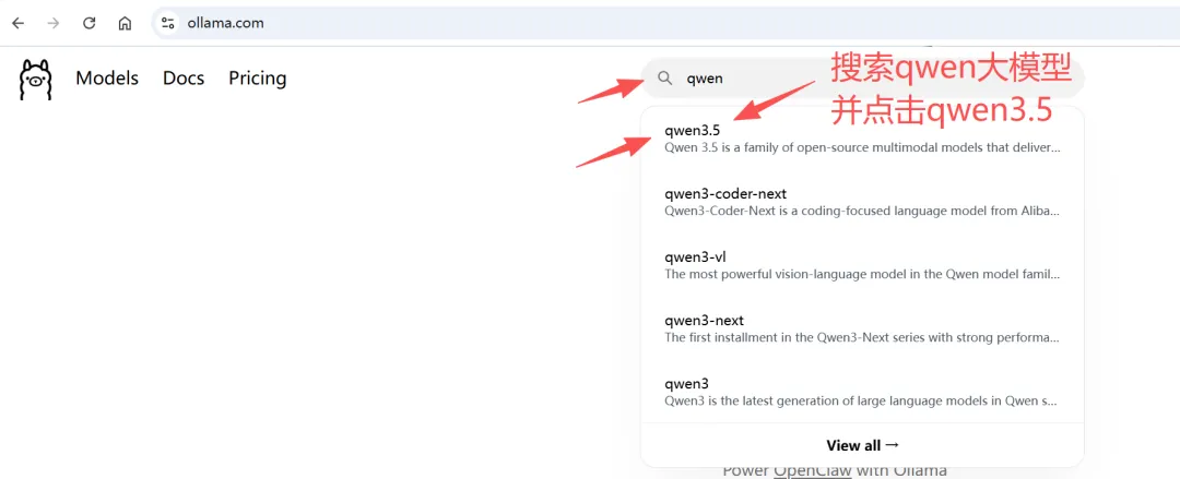 # ollama pull 只下载大模型,不会启动大模型ollama pull qwen3.5:9b在ollama官网查看各种大模型的名字。
