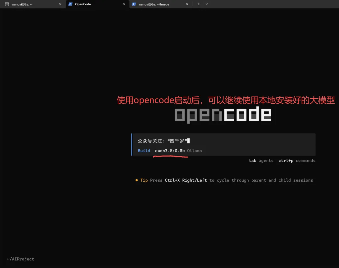 OpenCode的安装,请查阅这篇文章《WSL + OpenCode 最佳实践:环境一致、模型配置、GUI 远程使用》。