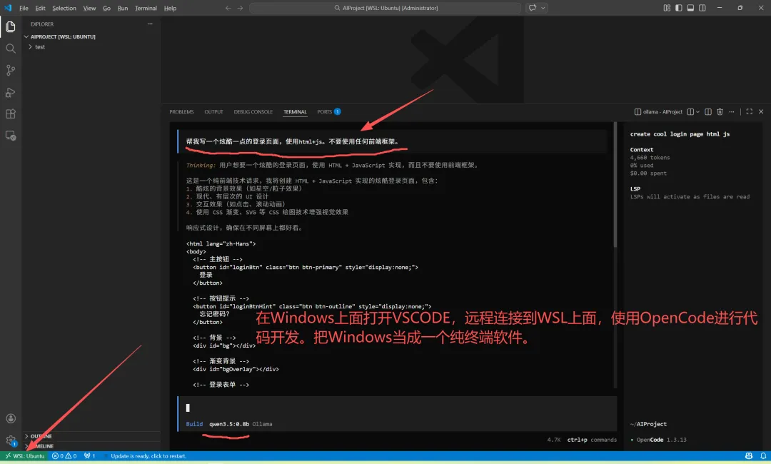 5. 使用 VSCODE 连接 WSL 通过 OpenCode 使用本地大模型