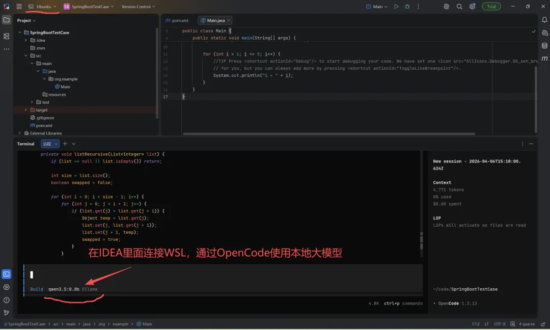 6. 使用 IDEA 连接 WSL 通过 OpenCode 使用本地大模型