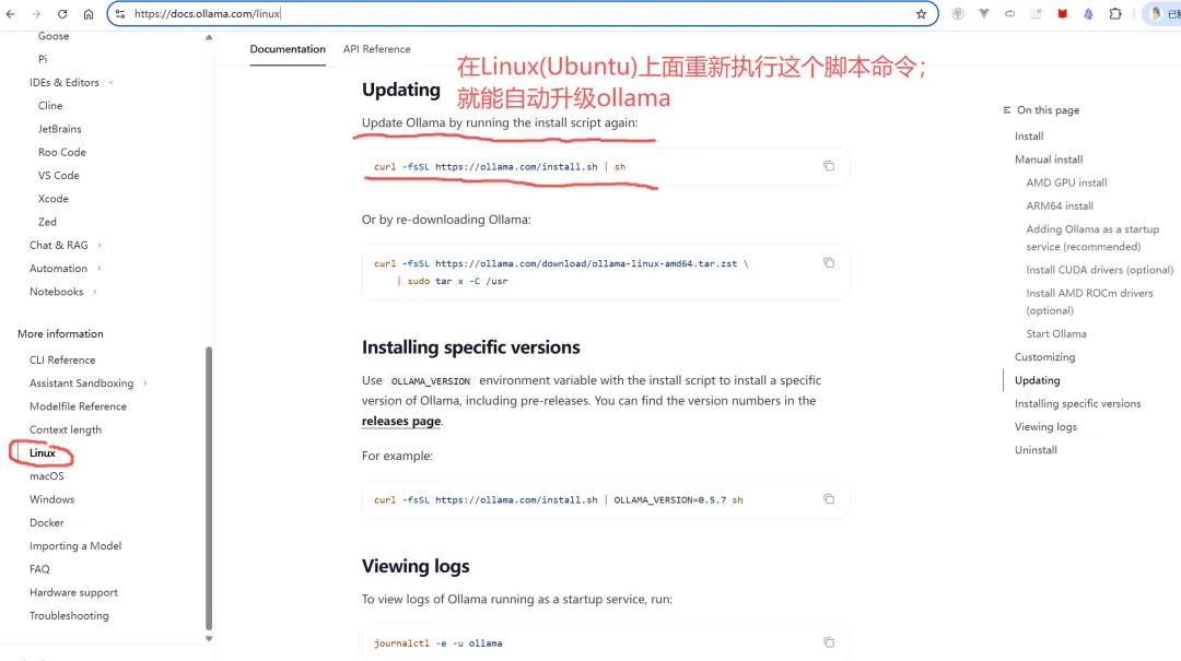 # 升级Ollama的版本curl -fsSL https://ollama.com/install.sh | sh