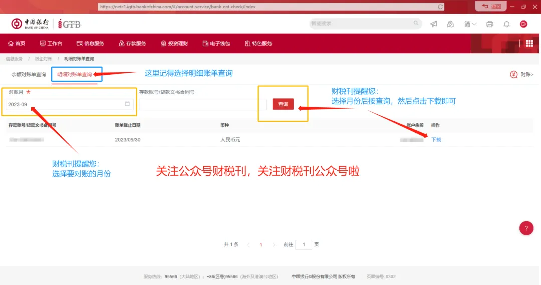 14、下载对账单。