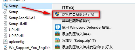3.找到并选中Setup,鼠标右击选择“以管理员身份运行”