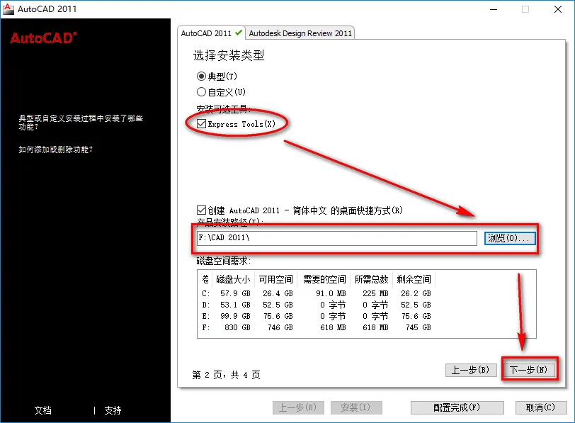 10.勾选Express Tools,选择软件安装路径,点击“下一步”