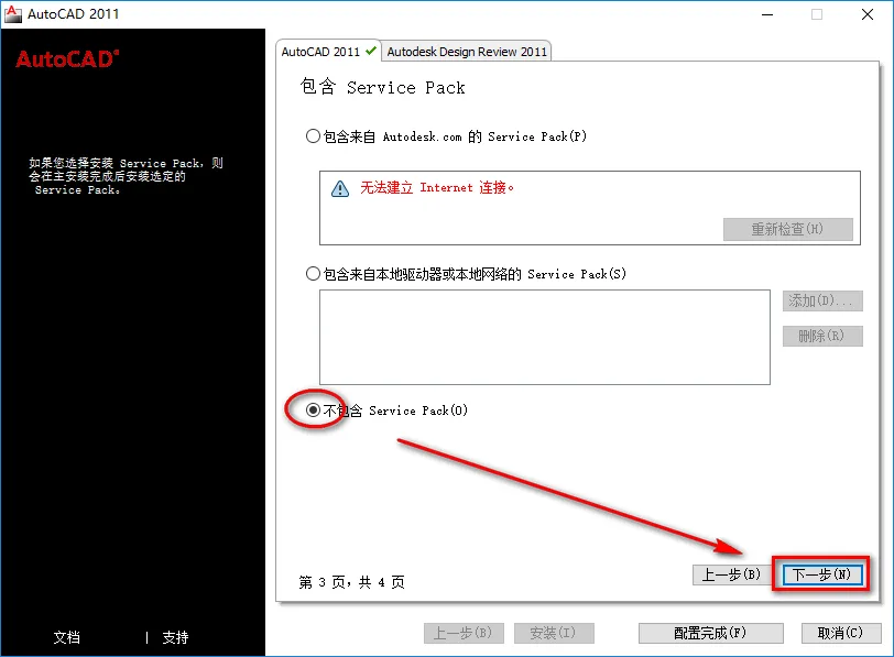 11.选择不包含Service Pack,点击“下一步”