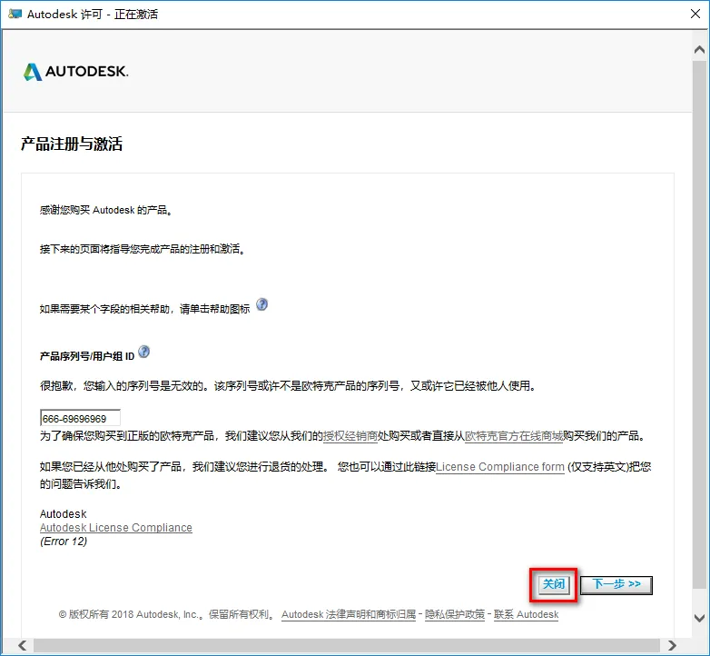 17.点击“激活” ![]() 18.如果出现以下提示,点击“关闭”