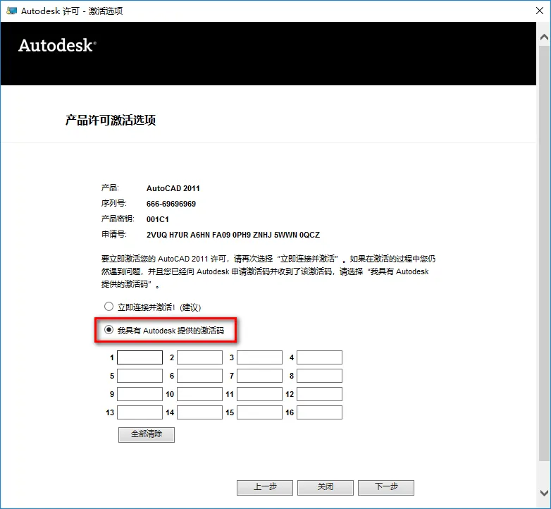 20.选择“我具有Autodesk提供的激活码”