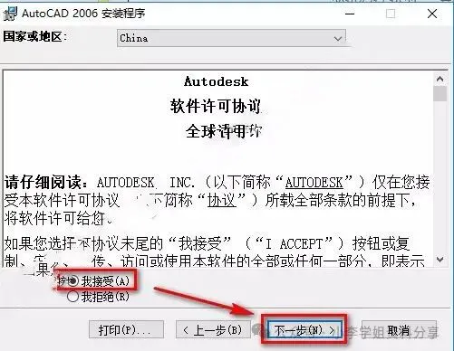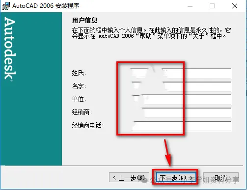 4.点击“下一步” 5.选择我接受,点击“下一步” 6.序列号输入:191-75444444,点击“下一步” ![]() 7.姓氏、名字、单位、经销商、经销商电话随便填写,点击“下一步” 8.点击“下一步”