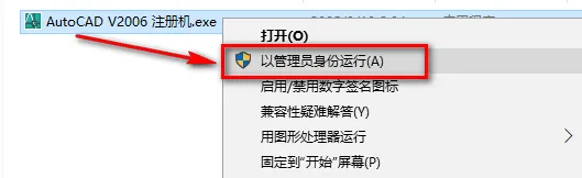 18.选中AutoCAD V2006 注册机,鼠标右键选择“以管理员身份运行”