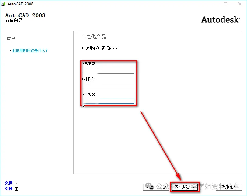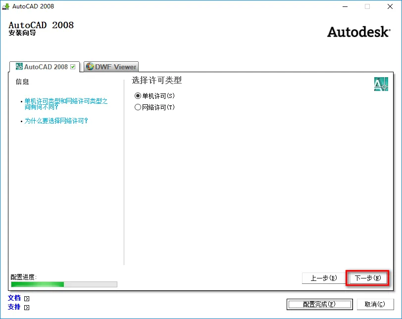 7.选择我接受,点击“下一步” ![]() 8.名字、姓氏、组织随便填,点击“下一步” ![]() 9.点击“配置” ![]() 10.点击“下一步”