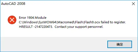 注:安装过程中如果出现如下错误,属于正常情况,点击“确定”即可 ![]() 15.取消勾选查看AutoCAD 2008自述文件,点击“完成”