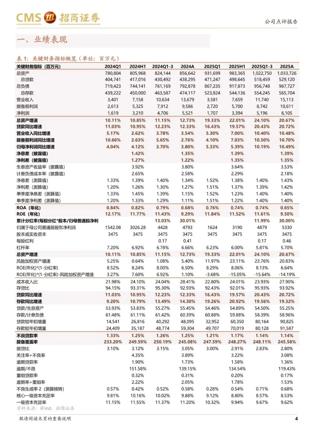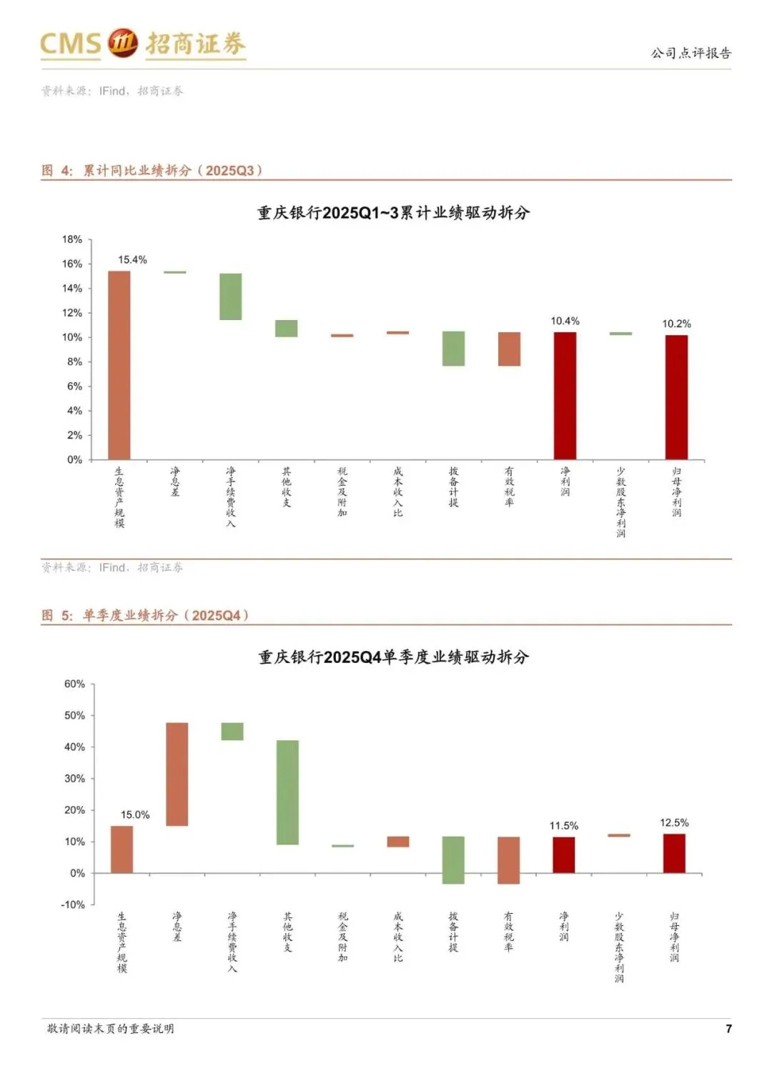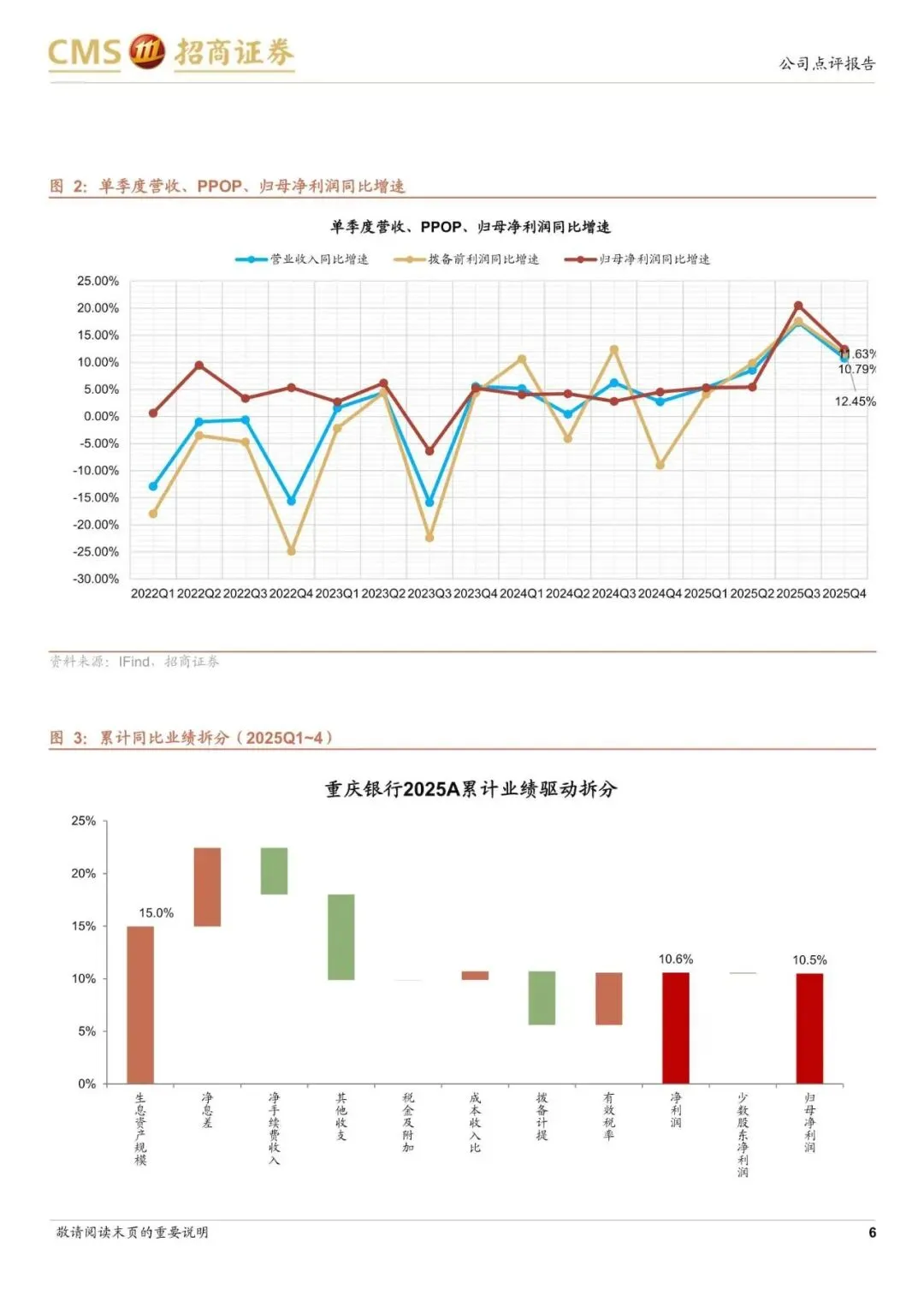 重庆银行披露 2025 年报,25Q1~4 营业收入、PPOP、归母利润同比增速分别10.48%、10.70%、10.49%,增速分别较 25Q3 变动 0.09pct、0.20pct、0.30pct,营收、PPOP、归母净利润增速保持较高水平。累计业绩驱动上,规模、息差和有效税率形成正贡献,中收和其他非息形成负贡献。