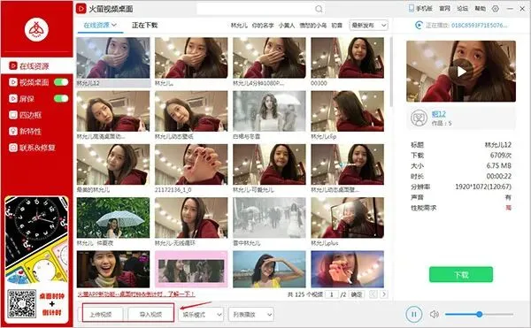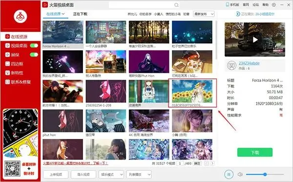2、下载成功之后,可在左侧的视频桌面中查看并应用于桌面;