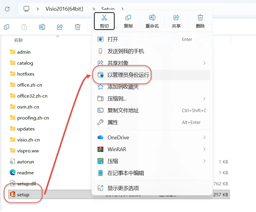 3.鼠标右击"Setup"选择"以管理员身份运行"。