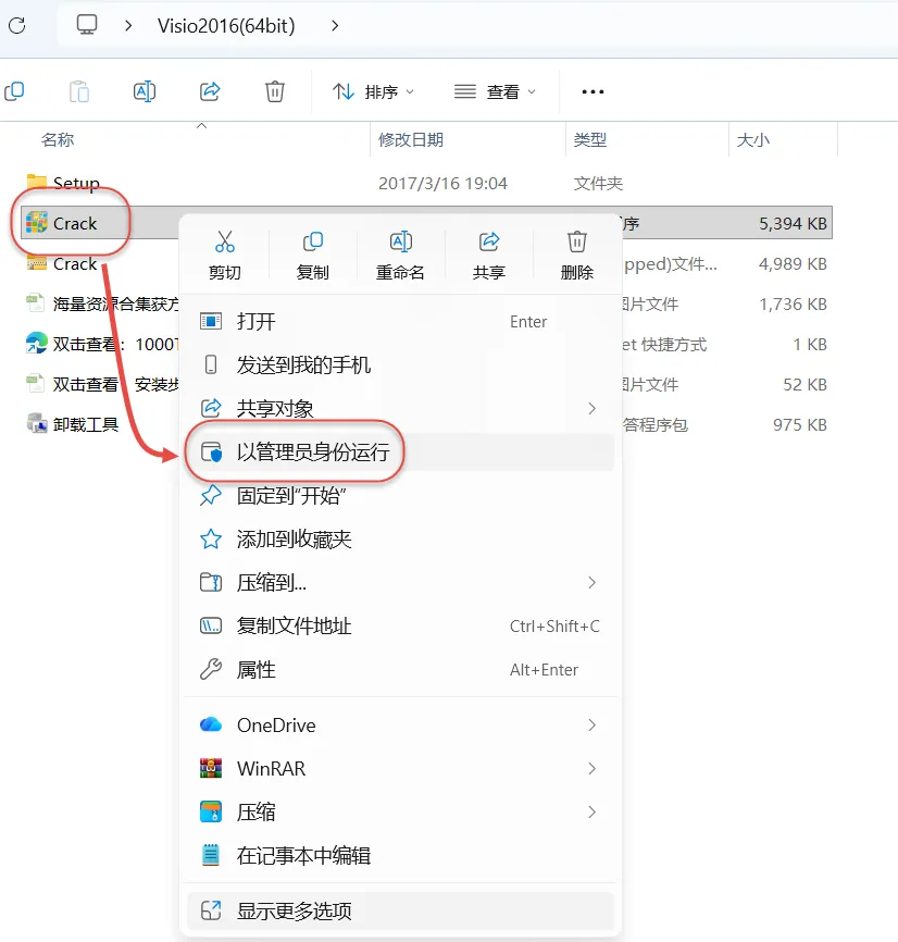 10.鼠标右击解压出来的"Crack"选择"以管理员身份运行"。