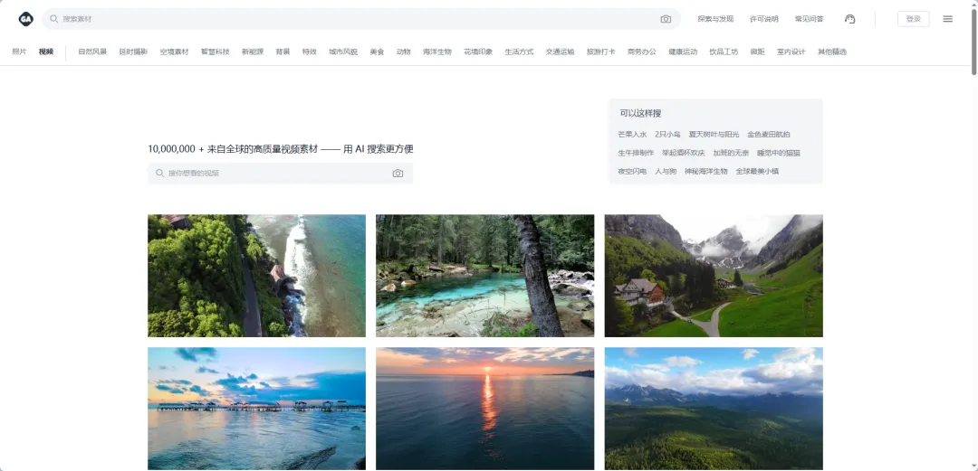 ✅ 核心优势:全球知名的免费素材网站,视频、图片都有,全部免费商用,无版权限制,无需标注出处;素材质量高,分类清晰(风景、人物、日常、科技等),电脑端搜索超便捷。
