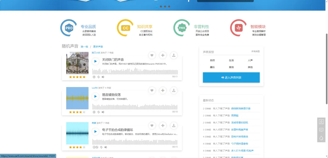 #### 3. 耳聆网(重点推荐:免费商用音效)