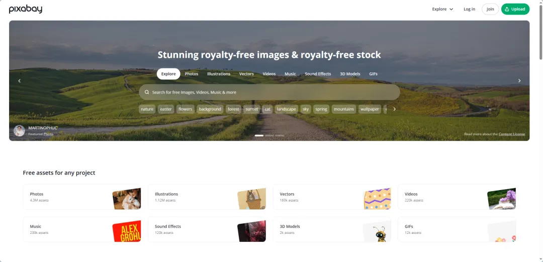#### 5. Pixabay(备用:视频+图片+音效全能)