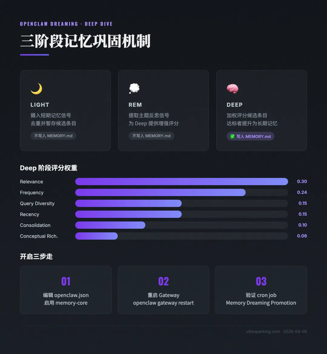 官方文档:https://docs.openclaw.ai/concepts/dreaming[1]
