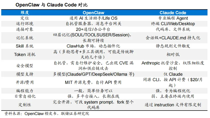 相比于 AI 编程的 Claude Code ,OpenClaw 还不具备完全替代全场景生产力工具的可行性: