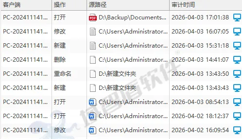 谁、在什么时间、对哪个文件做了什么操作(创建、修改、重命名、删除、复制、移动),全部记录在案。