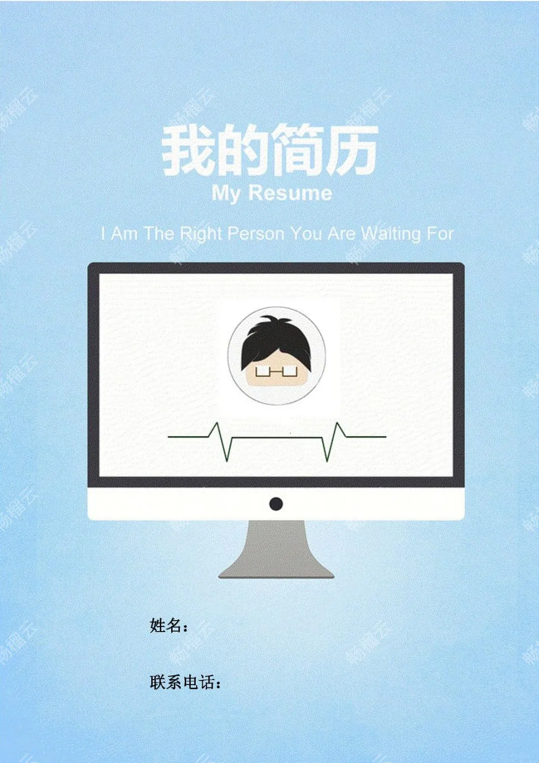 蓝色风格个人简历封面模板