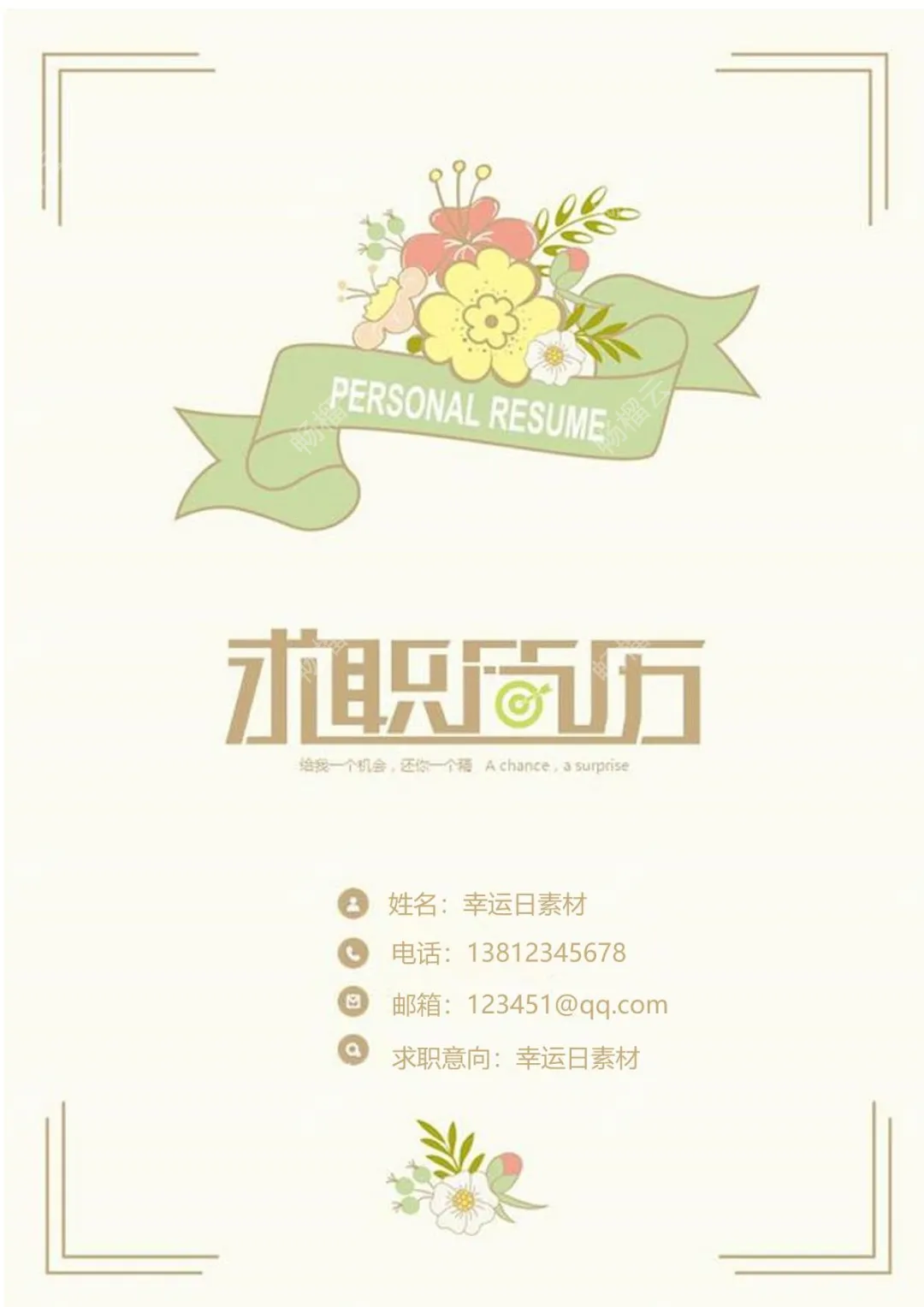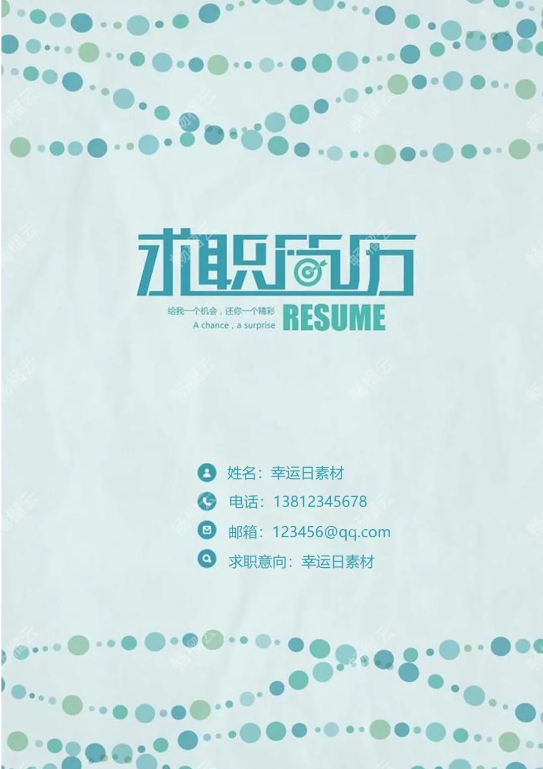 5幸运日素材 求职意向联系方式