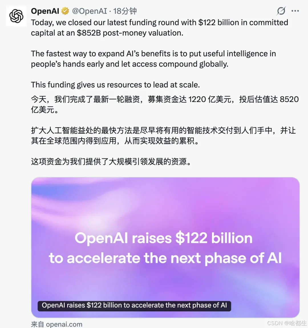 OpenAI创纪录融资1220亿美元