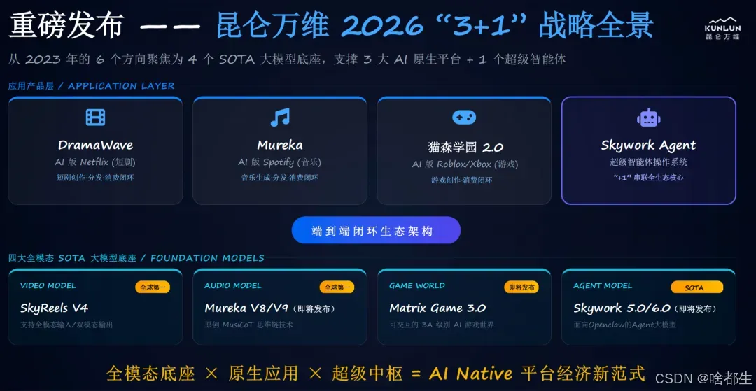 昆仑万维发布2026 AGI战略与AIGC全家桶,三大SOTA模型登顶全球第一梯队