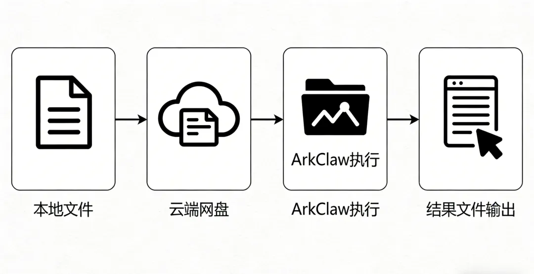别小看这四个字。它不是普通意义上的“传个附件”,而是把 TOS 桶直接当成一个网盘来用,本地和云端之间能快速上传下载,ArkClaw 还能直接调用这个“网盘”里的文件去做任务,任务跑完后的结果文件,也能再放回去。官方文档写得很直白:它解决的是文件在本地、云端和 Agent 之间怎么流转的问题。
