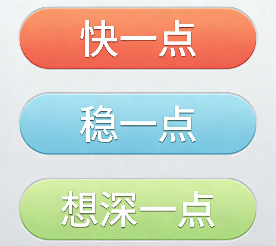 因为普通人不想先理解模型参数、推理链路、调用策略,才有资格决定 AI 该怎么想。他只想点一下:快一点,稳一点,或者想深一点。