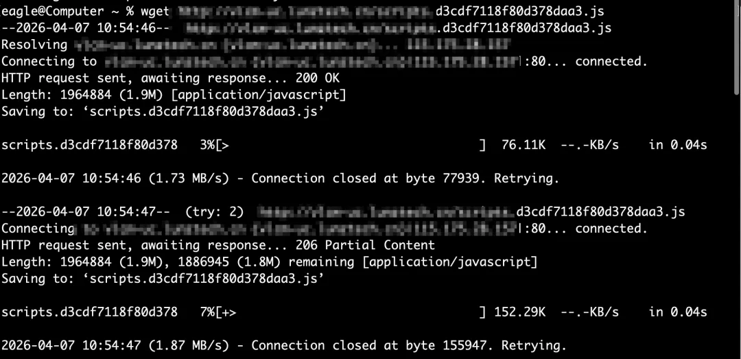 用户反馈“下载文件到一半就断了”,自己用wget或curl测试,果然看到屏幕上反复出现 HTTP 206 Partial Content,文件下了又断、断了又重试,折腾半天也拿不到完整文件。