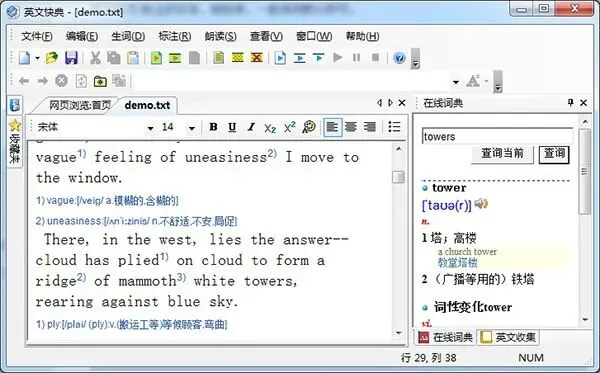 英文快典电脑版就是专门为这个场景设计的在线阅读翻译工具。你读英文文章时,遇到不会的词点一下就能翻译,省得切出去查词典。更猛的是,即使你几乎看不懂,它也能帮你把全文的生词全扒出来,集中展示,让你快速扫清障碍。比起传统一个个词查的方式,它把“阅读”和“查词”真正打通了,效率高不少。
