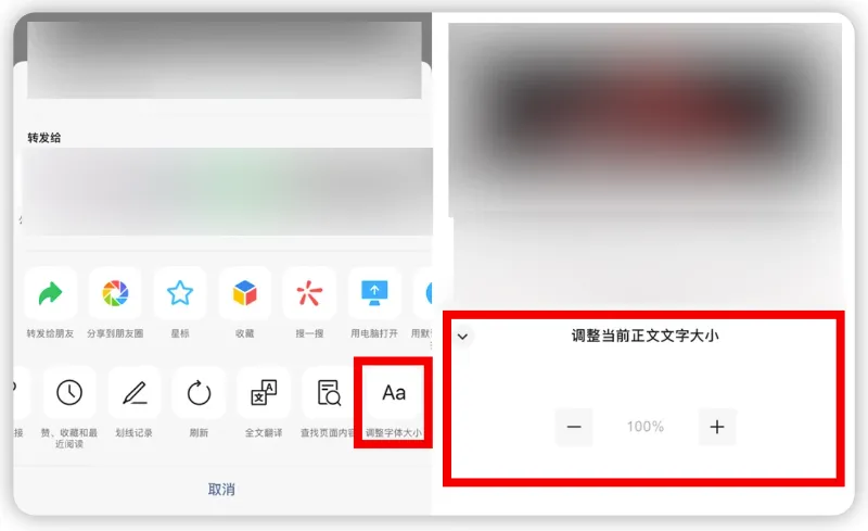 虽然是个小细节,但非常贴心。现在调节公众号文章字体大小,从以前的“左右滑动条”变成了“加减按钮式”。对于手指不够灵活的中老年用户,或者只是想微调字体的年轻人来说,按钮式的操作显然更加精准、不易出错。