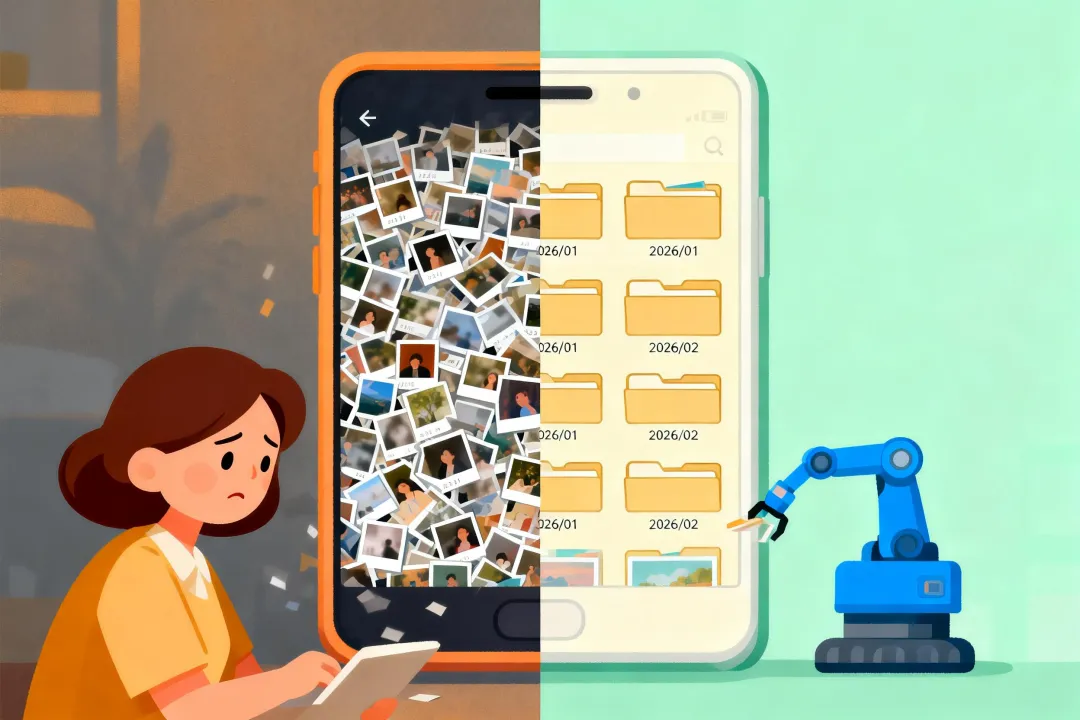 把照片从手机传到电脑 按日期创建文件夹(2026/03/) 手动把照片移到对应文件夹 删掉重复的、模糊的
