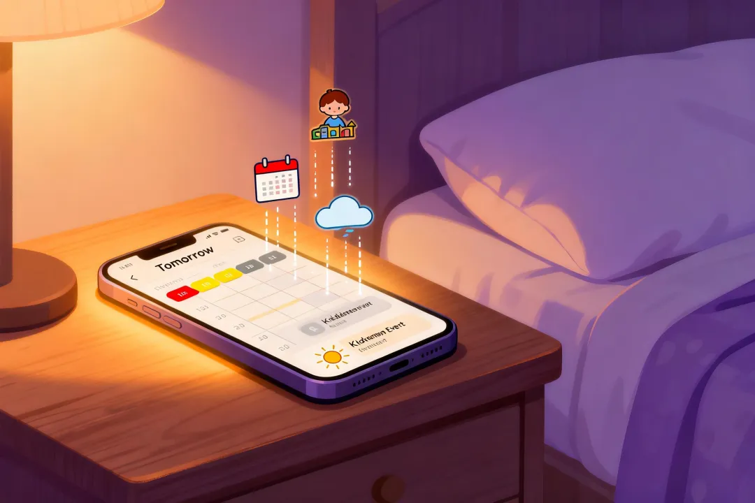 查看明天的日历 回忆今天有没有没做完的事 列一个明天的待办清单 标注优先级