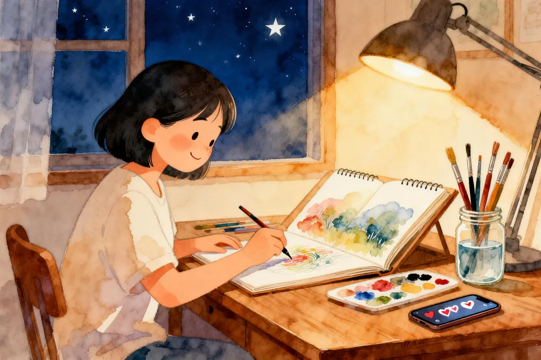 3 个月画了 50 幅画 在小红书开了账号,发了 20 幅 有 2000 个粉丝 有人问:"能教我吗?"她开始做付费课程
