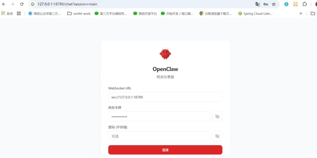 宿主机:127.0.0.1:18789 或 你的服务器IP:18789