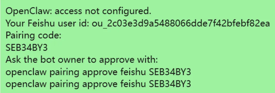 飞书配置好了,现在需要配对才能用: