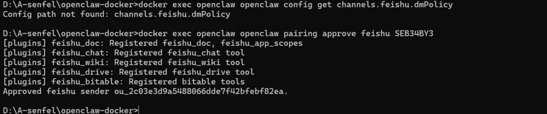 openclaw pairing approve feishu <配对码>